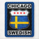Chicago Swedish design, in the style of a cool American road route sign. The text Chicago Swedish is along the top and bottom, with the flag of the City of Chicago and the flag of Sweden inside the route sign. Great for Chicagoans of Swedish descent, and for ex-pats in the Windy City.