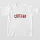 Check out this Chicago t-shirt! Are you from Chicago, Illinois? Do you have a friend or family member who loves Chicago, Illinois? If so, this "Banner" t-shirt is exactly the gift that you're looking for! The design features "Chicago" in arched red lettering in the classic College font.