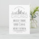 A unique wedding invitation for a marriage taking place in the beautiful city of Chicago. This invitation features a stylised illustration of the city's unique skyline with its name underneath. This is followed by your wedding day information in a matching open lined style. On the reverse side of the invitation is a deep grey colour to complement the look and feel. All individual elements of the invite card are unlocked so feel free to change or add any details necessary by using the customisation function. You can add a photo to the reverse side and add a black and white filter to it. Also, you can experiment with the many unique thicker paper types and cuts available. Matching RSVP cards, belly bands, tote bags, and more are available. Have fun being creative and making it your own!