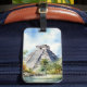 Nice luggage tag with Chichen Itza, Mexico. Beautiful painted El Castillo Pyramid, ruins of Maya Empire.