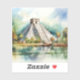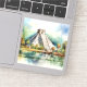 Nice sticker with Chichen Itza, Mexico. Beautiful painted El Castillo Pyramid, ruins of Maya Empire.