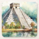 Coaster with Chichen Itza, Mexico. Beautiful painted El Castillo Pyramid, ruins of Maya Empire.