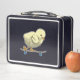 This is a standard metal lunchbox that appears to work just fine. We designed this box ourselves with an uploaded photo and custom text on the front and back. It looks absolutely beautiful except the front of the lunchbox is not centered like it shows in the photo. The print borders don't align with the inset flat part of the box where the preview photo online showed it perfectly centered in there. The back looks nice and centered though.