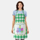 Chick Colour Eggs Green Check Happy Easter NAME Sq Apron