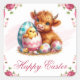 Chick, Cow & Easter Eggs Happy Easter Square Sticker
