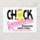 Breast cancer warriors, fight back chick-style while making it known that breast cancer may have interrupted your life TEMPORARILY but you will fight it and you will win with our mad, but absolutely adorable, chick with an oversized head and pink bow. This light-humoured design is sure to bring a smile to a serious cause while you express your empowerment over breast cancer and share a message of breast cancer awareness. We proudly donate to health, animal, and Darfur charities.
