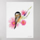 Chickadee Bird Pink Flowers Watercolor Art Poster