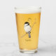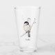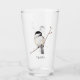 A colour pencil drawing of an adorable chickadee adorns this customisable glass!