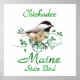 The state bird of Maine is the Chickadee. Show your pride in the Chickadee and Maine with this beautiful Chickadee on some leaves.