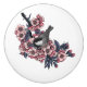 Hand drawn vector illustration with branch of cherry blossom and chickadee bird