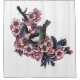 Hand drawn vector illustration with branch of cherry blossom and chickadee bird