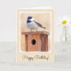 Chickadee on Birdhouse Painting Original Bird Art Card