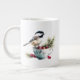Chickadee on Teacup With Cranberries Large Coffee Mug