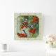 Birds in the apple orchard during the autumn harvest. Two black-capped chickadees perch in an apple tree while a third chickadee sits on a basket filled with ripe, freshly harvested fruit ready for market. All on a cheerful green patterned background. Realistic artwork created from an original oil painting by wildlife artist Crista S. Forest.