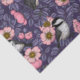 Hand drawn vector pattern with chickadee birds and pink wild roses