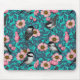 Chickadees in the wild rose, pink and blue mouse pad