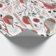 Chickadees Red Grey Pattern With Floral Wrapping Paper