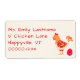 Shipping labels with hen / chicken and egg design. Off-white, large labels have a printed text template in red. Simple and cute design for those who raise chickens or have a chicken farm.