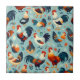 Chickens and Roosters Seamless Pattern Design. Farm animals; Rooster and Hen Graphic Design. White, blue, red, and orange.