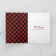 Illustration of a chicken wearing a santa hat. Border and reverse side are red and black buffalo plaid pattern design. Personalise with your family photo on front. Personalise the text inside.