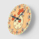 This cute clock will add a touch of whimsy to your kitchen. Design features silly chicken with eggs as number markers and colourful polka dot border.