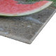 This glass cutting board with a barred rock chicken loving her watermelon can also be used as a decorative table cover to set things on