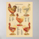 Vintage illustrations of the chicken showing the surface anatomy with and without feathers, skeletal structure, muscles and internal organs. Chart for the veterinary clinic or school education.