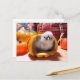 Chicken in a pumpkin holiday postcard