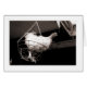 A stuffed chicken sits in a hanging basket. Taken at the old Robert's Emporium / Flea market which used to be in Salisbury Road, Cardiff. (now upstairs in Cardiff Antique Centre). The photo is in warmed toned black and white.