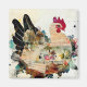 This beautiful chicken mixed media collage features a lovely laying hen pieced together from details such as lovely florals, watercolor splashes, old letters, and ink blots.
