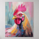A quirky modern portrait of a chicken, brought to life with bright pastel colours and expressive abstract brushstrokes. The playful use of pinks, blues, and yellows gives the painting a whimsical feel, while the textured brushwork adds depth and energy to the composition. This contemporary take on animal portraiture is perfect for adding charm and character to any space.