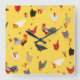 This Chicken wall clock has a Memphis style look with a chicken farm theme. Modern geometric patterns are used in the design to colour roosters and chickens in a pastor with a yellow chicken wire background. There are two big roosters and ten lovely hens in this pattern. A fun updated chicken pattern for a modern country look. Perfect for anyone that is chicken crazy.