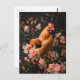 A charming country scene featuring a proud chicken nestled among soft pink flowers, blending rustic farmhouse warmth with delicate floral elegance. Perfect for lovers of vintage country charm.