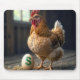 A chicken sits in a cosy wooden barn next to a large egg with a green dollar sign