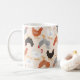 Farm animals, country chickens and roosters coffee mug. Fun chicken pattern on light beige background,  french country design.