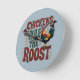 Chickens Rule the Roost Rustic Farm Illustration Round Clock