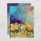 Elegant artistic vintage style floral design with white flowers and funny chickens digital painting and watercolor in teal,aqua blue,green colours with gold sparkles and silver foil by Bulgan Lumini (c)