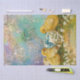 Elegant artistic vintage style floral design with white flowers and funny chickens digital painting and watercolor in teal,aqua blue,green colours with gold sparkles and silver foil by Bulgan Lumini (c)