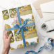 CHICKENS, SNOWDROPS AND EASTER EGG WITH BLUE BOW WRAPPING PAPER