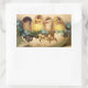 CHICKENS WITH BLUE WHITE FLOWERS IN EASTER EGG RECTANGULAR STICKER