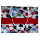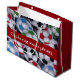 Large glossy gift bag with an image, on the front and back of red, green, blue and black soccer balls on flannel. Red ribbon has customisable text that reads “Chicks Dig Soccer Players.” See matching medium gift bag. See the entire Father’s Day Gift Bag collection in the PARTY FAVORS section.