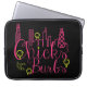 Chicks from the Burbs 15" Laptop Sleeve, Pink & Yellow Ink on Black