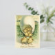 This postcard features a vintage illustration of chicks hatching from a giant shell. Below them, it says, "Easter Joy attend you". It is surrounded by lily of the valley flowers with a tree in the background.