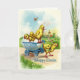 These adorable chicks in a wagon are here to wish a Happy Easter from this brightly coloured vintage Easter postcard reprinted on this greeting card.
