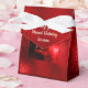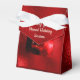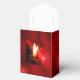 The reflected flame of a single red candle glows brightly on the front of this favour box, covered in a look of textured foil in a deep, deep red. "Wishing You A Blessed Holiday Season" is in a pale gold script font on the flap. The photo of the red candle, its flame and reflected flame and star-filled black and red muzzy background blend into a background of deep red foil.. The inscription, "Wishing You A Blessed Holiday Season" can be edited easily to anything you like. Just hit "Personalise" and get started.