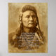 Chief Joseph of the Nez Perce speech, "I will fight no more forever." Watercolor effect portrait over parchment look background. Surrender speech to General Howard.