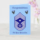 Chief Master Sergeant Promotion Card. This card is decorated with the U.S. Air Force Chief Master Sergeant insignia bracketed by American Bald Eagles and the words "Air Force." The words "Congratulations on your Promotion in World's greatest Air Force" and "May blue skies and fair weather follow you always" appear inside the card. A great gift idea.