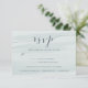 Our green and grey Chiffon RSVP card features a watercolor wash background in sheer tone on tone shades of aqua-tinted seafoam green, accented with chic calligraphy and serif lettering in dusty slate. Personalise with your desired RSVP date, custom accept/decline wording, and entree options for guests to choose from. Designed to coordinate with our Chiffon wedding invitation suite in Sea.