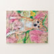 Chihuahua art colourful 30 oversized piece jigsaw puzzle for girls. Pink green background tan beige girly dog portrait. Min pin mix breed. Beautiful, elegant, trendy, cool, chic, psychedelic design. You can click on "customise further" to change the size of the image to fit if you decide to change the size. Image copyright Marg Seregelyi Photography.