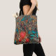 Chihuahua art living room decorative reusable tote bags. Teal brown red beige dog lovers portrait. Min pin mix canine breed. Beautiful, elegant, trendy, cool, chic, original, psychedelic pet design. Image copyright Marg Seregelyi Photography.